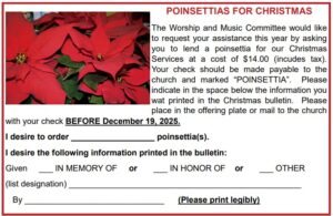 Sunday, November 16, 2025—Annual Congregational Meeting and Consecration Sunday Lunch in the fellowship hall following worship